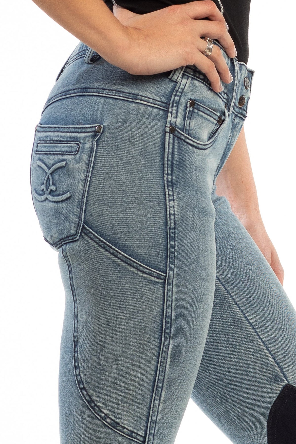 Equestrian Jean - Knee Patch with Cell Phone Pocket - Faded Blue
