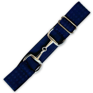 Crafted from durable elastic stretch webbing, this 1.5-inch-wide belt ensures a secure and comfortable fit that adapts to your every movement. The equestrian-inspired silver snaffle buckle adds a touch of elegance, allowing you to showcase your equestrian style with subtlety.