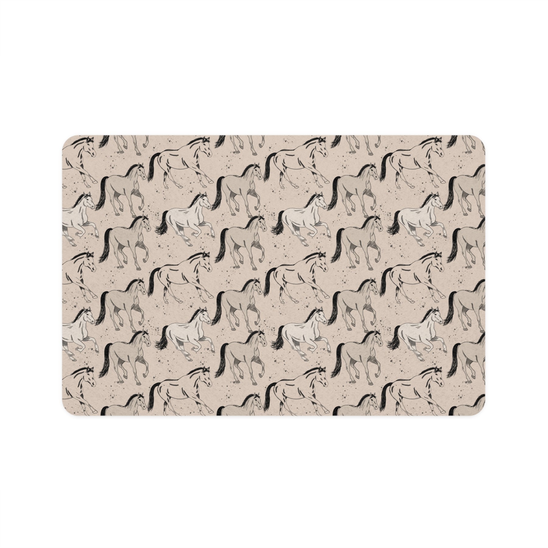The durable polyester top showcases crisp, edge-to-edge artwork, while the anti-slip neoprene backing keeps food and water bowls steady—even for enthusiastic eaters. Lightweight, quick-drying, and easy to wipe clean, it’s as practical as it is pretty, ready for post-trail-ride snacks, muddy paws, and cozy evenings after the barn.