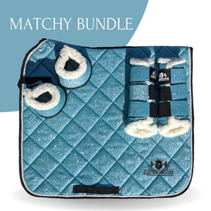 The most requested sparkling set color is here! Our signature matching set will make your horse stand out! Light and dreamy baby blue will look stunning on any coat! Silver piping, Equestroom logo embroidery in the corner, black lining, and fastening stripes, because the details matter.