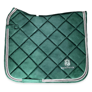 The serenity of pine forests meets the elegance of equestrian excellence in lush green suede and exquisite details!